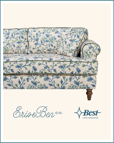“Best Home Furnishings is a dream come true for us,” says Erin Napier. “We have been on the search for an upholstery partner that just felt like ‘us.’ Best epitomizes the values we’ve been looking for; pieces that are made in America with timeless craftsmanship and the ability to develop furniture designs that represent our vision.”