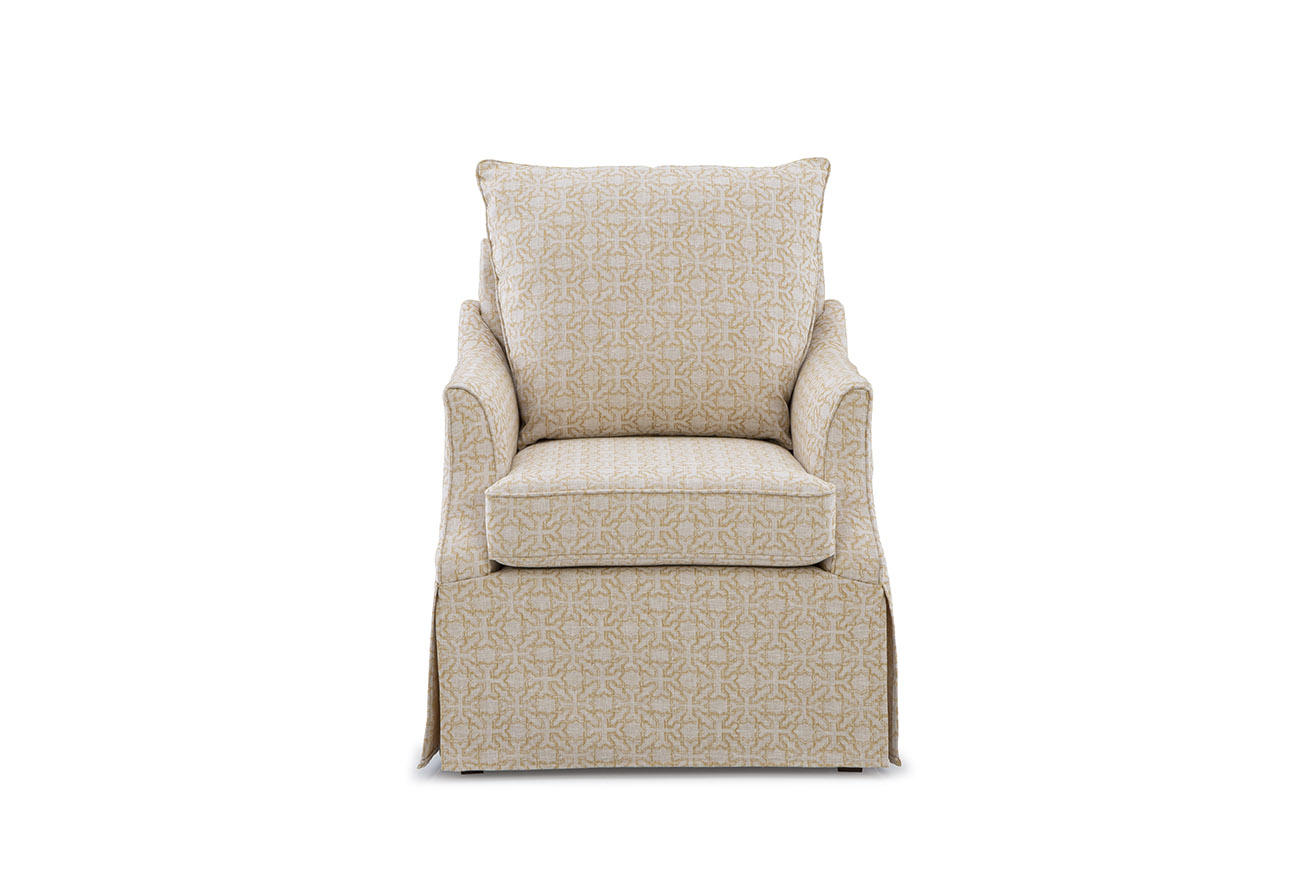 Whether it’s the quiet curves of the step-back arms, the tall cushioned back designed for long conversations, or the way the skirt is just short of grazing the floor—this chair doesn’t shout for attention. Instead, it quietly complements your space with gentle grace and timeless versatility.