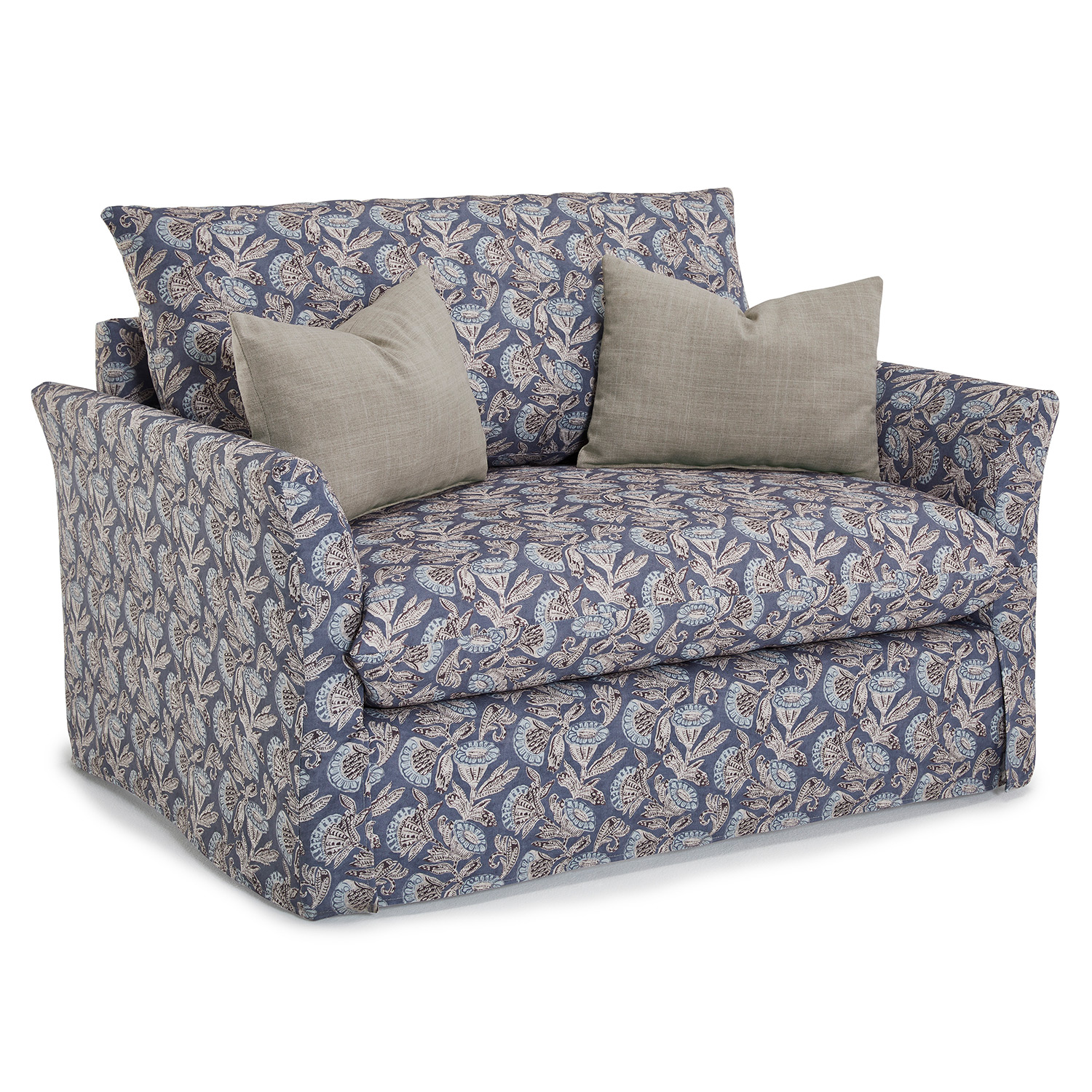 The Oxford chair-and-a-half blends timeless charm with the ease of modern living. With its gracefully flared, slim rolled arms and full tailored skirt, this design nods to traditional slipcovered styles—but with a relaxed refinement that feels right at home in today’s interiors.